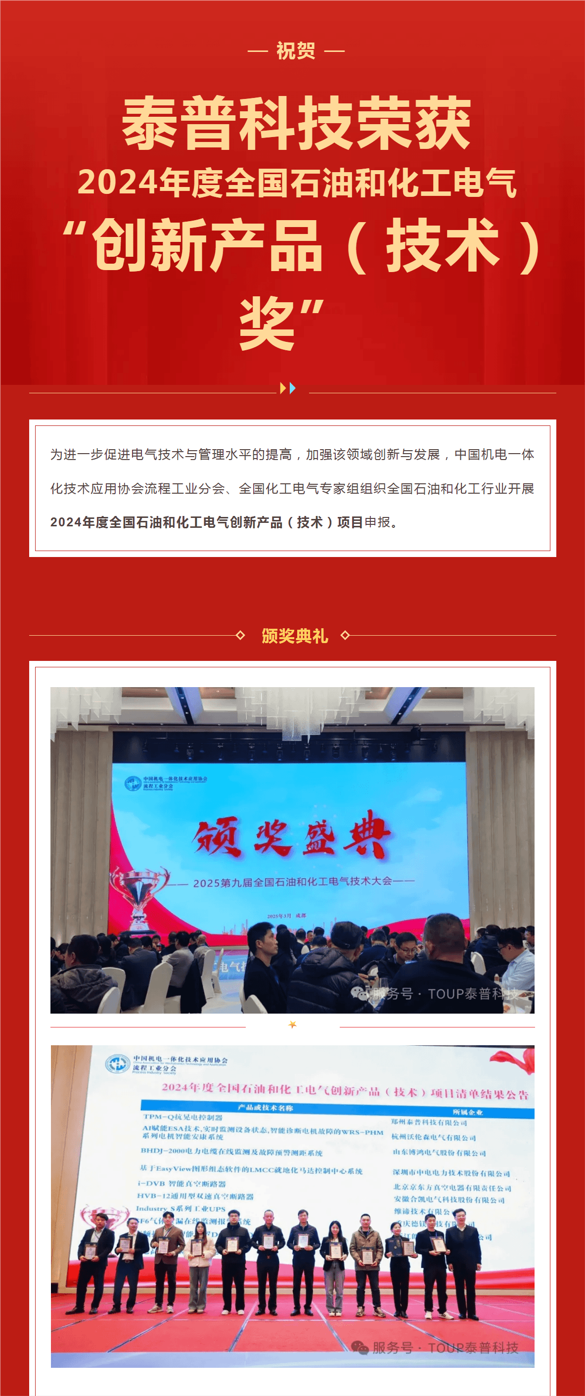 喜報(bào)!泰普科技再獲殊榮,抗晃電控制器摘得全國(guó)石油和化工電氣“創(chuàng)新技術(shù)獎(jiǎng)”!