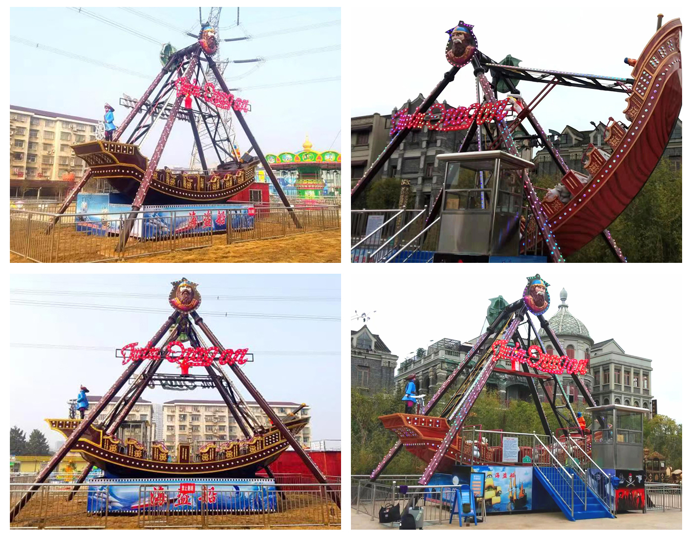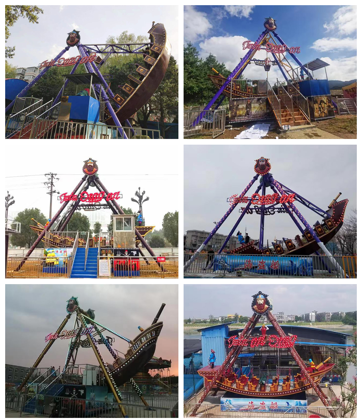 我公司生產的海盜船在貴州六盤水、 遼寧朝陽 、遼寧營口 、河北邯鄲 、湖南懷化、 湖南常德 、貴州貴陽等地安裝使用現場圖